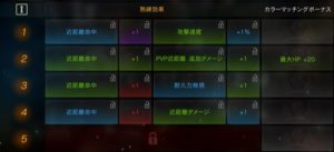 たとえば、赤3つで「攻撃力+3%」、青なら「MP回復速度+5%」みたいに、色の組み合わせで発動する効果が変わるから、どう組み合わせるかっていう戦略性も出てきたって感じ。