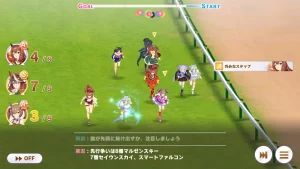 レース中、他のウマ娘のスキルにも影響されるから、駆け引きが本当に面白い。例えば、先頭のウマ娘にデバフスキルを使って、後ろのウマ娘を邪魔することもできる。逆に自分がデバフを受けないように、回復スキルで守るのも大事だよ!