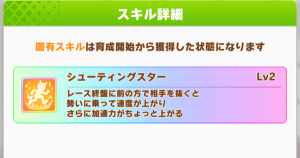 スキルを選ぶ時は、特にレースの終盤で発動しやすいものを選ぶといいよ。特に「加速」スキルは超重要で、レース終盤に強さを発揮するスキルを習得することで、勝率がグンと上がるから、この辺りを狙っていこう!